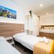 En el hostal o pensión, cada habitación incluye aire acondicionado, escritorio, TV de pantalla plana, baño privado, ropa de cama, toallas y terraza con vistas a la ciudad. Las habitaciones en el alojamiento cuentan con armario y cafetera.