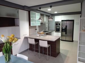 This luxurious holiday home features a pool with a view, a hot tub and a fireplace. Featuring a private entrance, this air-conditioned holiday home comprises 1 living room, 5 separate bedrooms and 4 bathrooms with a walk-in shower and a bath. Guests can make meals in the kitchen that comes with a stovetop, a refrigerator, a dishwasher and kitchenware. The spacious holiday home provides a washing machine, a tea and coffee maker, a seating area as well as a terrace with mountain views. The unit offers 7 beds.
