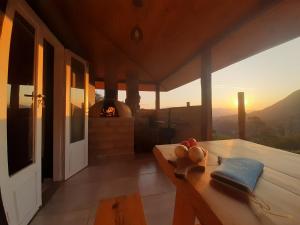 Dieses Ferienhaus bietet neben Aussicht auf Stadt und Berg, 1 Schlafzimmer mit Zugang zu einem Balkon. Es gibt einen Essbereich und eine Küche komplett ausgestattet mit einem Kühlschrank, einem Ofen und einer Herdplatte.