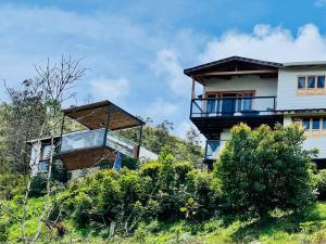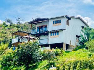 The spacious holiday home with a terrace and mountain views features 3 bedrooms, a living room, a flat-screen TV, an equipped kitchen with a fridge and kitchenware, and 3 bathrooms with a hot tub. Guests at Cabaña el Encanto can enjoy garden views from the patio, which is furnished with outdoor furniture. The property offers city views.