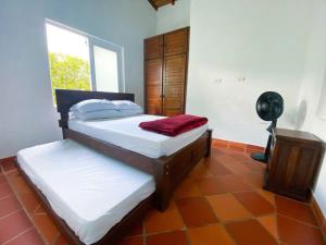 The holiday home at Cabaña hogareña para alquilar en Chinácota consists of 3 bedrooms, a fully equipped kitchen, and 3 bathrooms. A flat-screen TV is offered.