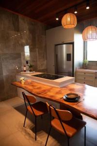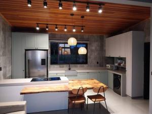 Dieses Ferienhaus ist ausgestattet mit 1 Schlafzimmer, 1 Badezimmer, Bettwäsche, Handtüchern, einem Flachbild-TV, einem Essbereich, einer voll ausgestatteten Küche und einer Terrasse mit Bergblick.
