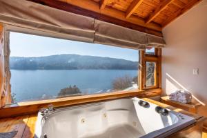 Two-level cottage: main room located in the upper floor, bathroom with hydromassage tub.