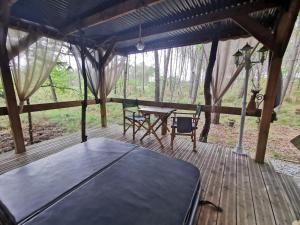 The hot tub is the standout feature of this holiday home. Boasting a private entrance, this air-conditioned holiday home features 1 living room, 1 separate bedroom and 1 bathroom with a shower and a hairdryer. The holiday home has a coffee machine, a seating area, heating as well as a terrace with garden views. The unit has 1 bed.