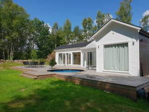 This holiday home's standout features are the private pool, hot tub and sauna. Featuring a private entrance, this air-conditioned holiday home consists of 1 living room, 3 separate bedrooms and 1 bathroom with a walk-in shower and a hairdryer. Guests will find a stovetop, a refrigerator, a dishwasher and kitchenware in the fully equipped kitchen. The holiday home also offers a barbecue. Boasting a terrace with garden views, this holiday home also provides a washing machine and a flat-screen TV with streaming services. The unit offers 6 beds.