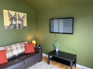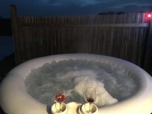 The hot tub and fireplace are the special features of this chalet. The chalet's kitchen, which features a refrigerator and a microwave, is available for cooking and storing food. The chalet provides a private entrance, a tea and coffee maker, heating, as well as a flat-screen TV with cable channels. The unit provides 1 bed.