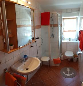 Dwupokojowy apartament mieści salon, kuchnię z lodówką i ekspresem oraz łazienkę z prysznicem i kosmetykami. Ręczniki i pościel są dostępne w apartamencie Café Hausnordlicht - Ferienwohnung 1.