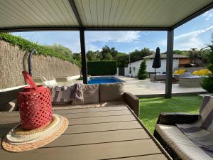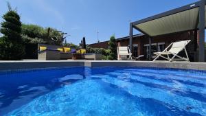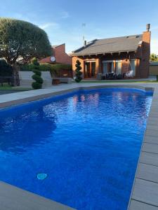 This holiday home's special features are the private pool and the fireplace. Boasting a private entrance, this air-conditioned holiday home includes 1 living room, 4 separate bedrooms and 2 bathrooms with a bath and a shower. Guests will find a stovetop, a refrigerator, a dishwasher and kitchenware in the fully equipped kitchen. The holiday home also features a barbecue. The spacious holiday home offers a flat-screen TV with cable channels, a washing machine, a tea and coffee maker, a seating area as well as garden views. The unit has 7 beds.