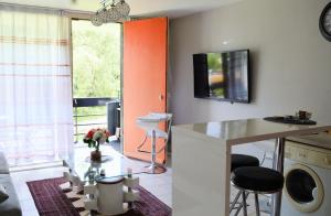 In the kitchen, guests will find a stovetop, a refrigerator, a dishwasher and kitchenware. The apartment offers a washing machine, a private entrance, a tea and coffee maker as well as a terrace with garden views. The unit is furnished with 2 beds.