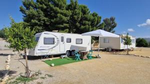 This mobile home's special feature is the private pool. Featuring a private entrance, this air-conditioned mobile home consists of 1 living room, 3 separate bedrooms and 1 bathroom with a shower. Guests will find a stovetop, a refrigerator, kitchenware and a microwave in the well-fitted kitchen. The mobile home also offers a barbecue. Boasting a terrace with garden views, this mobile home also provides a washing machine and a flat-screen TV. The unit offers 6 beds.
