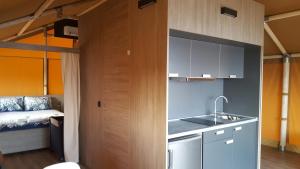 The well-fitted kitchen has a stovetop, a refrigerator and kitchenware. The tent offers a washing machine, a private entrance, a terrace with sea views as well as a private bathroom boasting a shower. The unit has 4 beds.