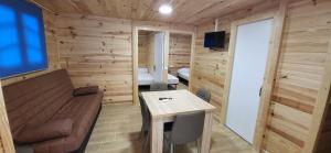 Boasting 2 bedrooms, this mobile home has 1 bathroom with a shower, a seating area and terrace where you can relax. Meals can be prepared in the well-fitted kitchen, which is fitted with a stovetop, a refrigerator, kitchenware and a microwave. This mobile home has a dining area, a wardrobe, a flat-screen TV and an outdoor dining area. The unit provides 3 beds.