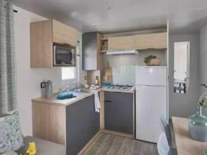Featuring a private entrance, this air-conditioned mobile home comprises 1 living room, 2 separate bedrooms and 1 bathroom with a shower. Meals can be prepared in the well-fitted kitchen, which comes with a stovetop, a refrigerator, a dishwasher and kitchenware. Boasting a terrace, this mobile home also provides an electric kettle and a TV. The unit offers 4 beds.