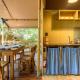 Nella maggior parte delle unità disporrete di angolo cottura completamente attrezzato, soggiorno e bagno privato completo di doccia. Il patio è invece arredato con tavolo e sedie.