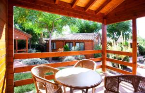Surrounded by Mediterranean gardens, this air-conditioned bungalow features a double bedroom and a twin bedroom. The lounge area has a TV, and there is a private terrace. The kitchenette has a gas hob, microwave and kitchenware. Each bungalow comes with a parking space included. Bed linen is provided, while towels are available for an extra cost. Please note that bed linen are changed every 7 nights.