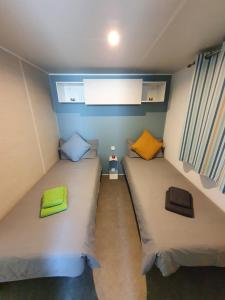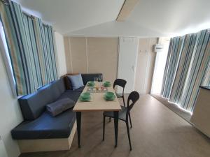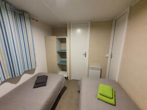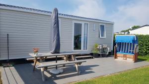 Guests will find a refrigerator, a microwave and a toaster in the kitchenette. The mobile home also includes a barbecue. Boasting a terrace, this mobile home also features a washing machine, a coffee machine and a flat-screen TV. The unit has 3 beds.