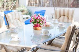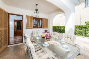 La casa presenta una decoración que combina los estilos clásico y colonial y cuenta con terraza amplia con zona de comedor al aire libre y barbacoa. La entrada principal da a la sala de estar con chimenea, mientras que la entrada trasera da a la terraza y a la cocina bien equipada. Incluye lavadora y utensilios de planchado. La 1.ª planta dispone de 3 dormitorios y 2 baños. El dormitorio doble principal tiene aire acondicionado y baño. También hay 1 dormitorio con 2 camas individuales y 1 dormitorio con literas. En la terraza delantera hay zona de relajación con sofá y sillones cómodos. La terraza trasera tiene porche y está amueblada con mesa y 6 sillas.