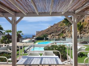 Canaima Corner with Heated Pool se nachází v destinaci Mogán a nabízí venkovní bazén, zahradu, soukromou pláž a ubytování s bezplatným Wi-Fi a výhledem na moře. Ubytování poskytuje bar. Pláž Playa de Puerto Rico se nachází 1 km odtud.