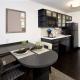 Ausgewählte Zimmer sind zusätzlich belebt mit einer Küche mit einem Kühlschrank, einer Mikrowelle und einer Herdplatte.