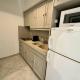 Apartmán má také kuchyňský kout s lednicí a koupelnu.