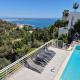 Soukromý bazén (pro naturisty): Obklopený odlehlými terasami, ideální pro relaxaci nebo užívání slunce v úplném soukromí. Velká panoramatická střešní terasa: Vybaveny salonky, ideální pro odpočinek nebo pořádání nezapomenutelných společenských večerů. Plně vybavený dům u bazénu: K dispozici je také sprcha a toaleta. Venkovní kuchyně u bazénu. Středomořská zahrada: Krásně terasovitý s palmami a olivovníky, vytváří autentickou atmosféru Riviera. Parkování: Soukromá garáž a vyhrazené parkoviště. Vnitřní vybavení