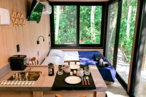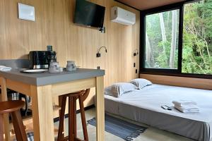 The air-conditioned chalet features 1 bedroom, 1 bathroom, a kitchen and a seating area. The kitchen is equipped with a refrigerator, kitchenware and a toaster. Featuring a balcony with sea views, this chalet also provides an electric kettle and a TV. The unit offers 1 bed.