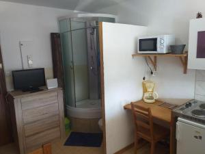 The apartment has 1 bedroom, 1 bathroom with a shower and a kitchenette. In the kitchenette, guests will find a stovetop, a refrigerator, kitchenware and a microwave. This apartment features a dining area, heating and a flat-screen TV. V této ubytovací jednotce se nachází 1 postel.