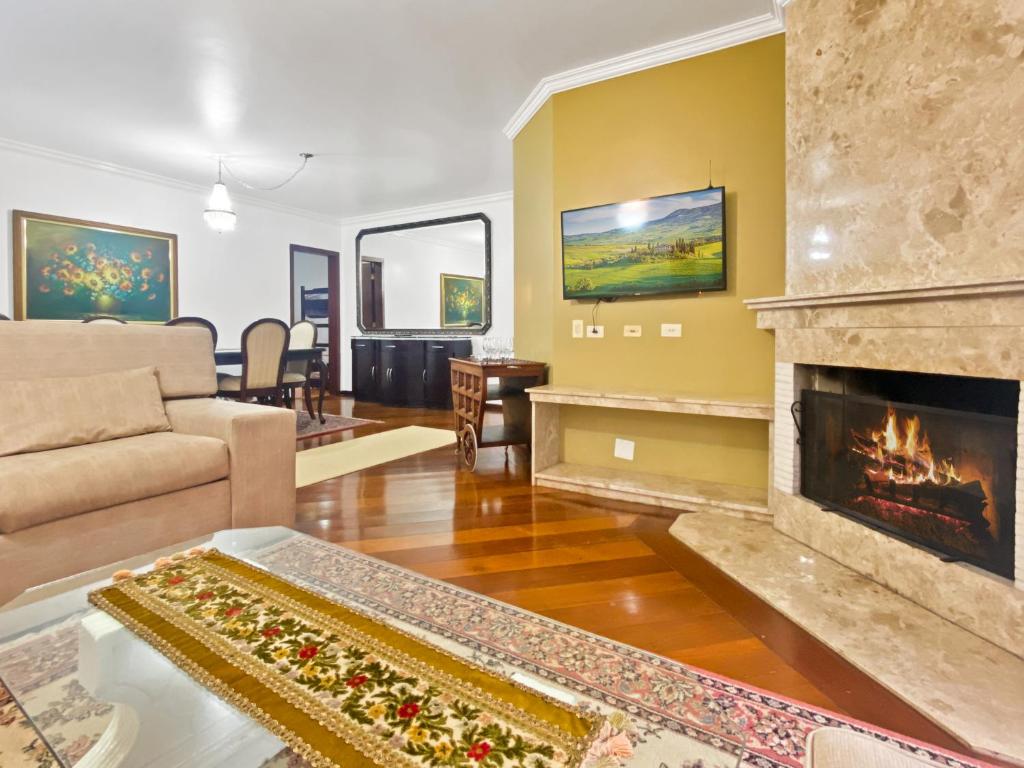 The spacious apartment with a balcony and garden views has 3 bedrooms, a living room, a flat-screen TV, an equipped kitchen with a dishwasher and an oven, and 3 bathrooms with a shower. Towels and bed linen are offered at the property. Capivari 3 Bedrooms Fireplace Charming also features a seating area and a fireplace.
