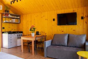 Boasting a private entrance, this air-conditioned chalet includes 1 living room, 1 separate bedroom and 1 bathroom with a walk-in shower and a hairdryer. In the kitchen, guests will find a stovetop, kitchenware, a microwave and a tea and coffee maker. This chalet has soundproof walls, flat-screen TV with cable channels, garden views, as well as wine/champagne for guests. V této ubytovací jednotce se nachází 2 postele.