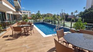 The spacious apartment with a terrace and sea views features 2 bedrooms, a living room, a flat-screen TV, an equipped kitchen with a dishwasher and a microwave, and 3 bathrooms with a shower. Towels and bed linen are provided at Capri 304 Porto Galinhas. Capri 304 Porto Galinhas includes an outdoor dining area.
