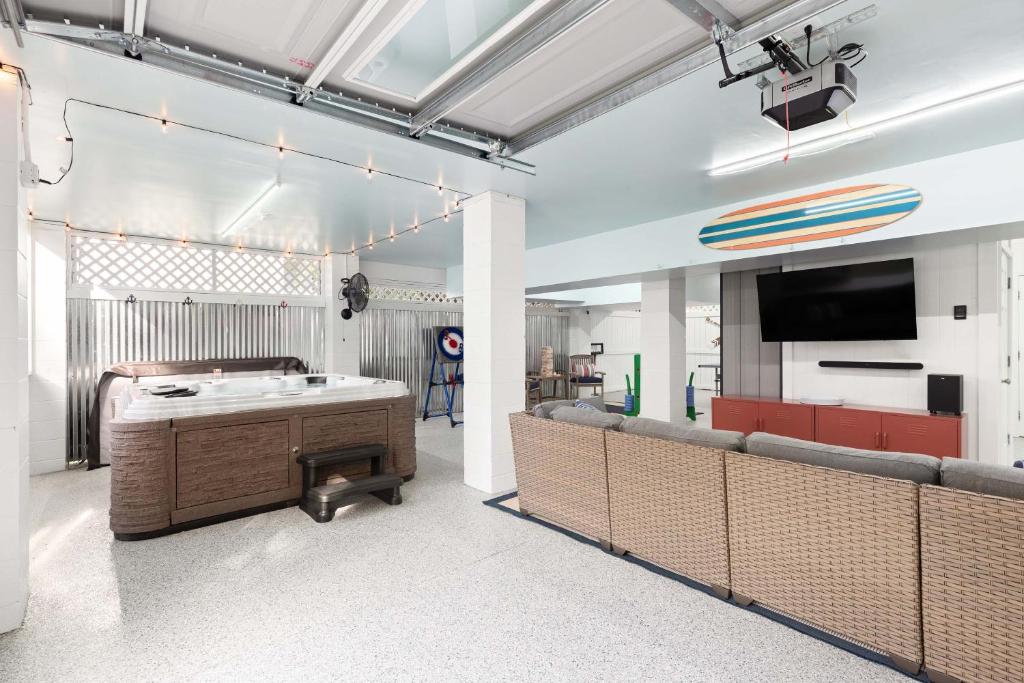 The private pool and spa bath are the standout features of this holiday home. This spacious holiday home comes with 4 bedrooms, a kitchen and 4 bathrooms with a walk-in shower and a hairdryer. Guests will find a stovetop, a refrigerator, a dishwasher and kitchenware in the well-fitted kitchen. The holiday home also includes a barbecue. The holiday home features air conditioning, a washing machine, a tea and coffee maker, tumble dryer, as well as a TV with cable channels. The unit has 4 beds.