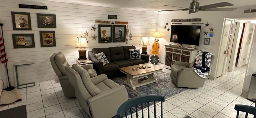 Klimatizovaný apartmán Captain's Quarters zahrnuje 2 ložnice, obývací pokoj, plně vybavenou kuchyň s lednicí a myčkou a 2 koupelny. Koupelna v ubytování zahrnuje sprchu a toaletní potřeby zdarma. V ubytování Captain's Quarters jsou pro hosty připraveny ručníky a ložní prádlo.