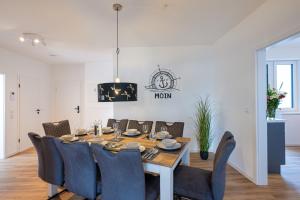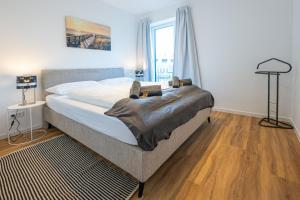 Apartmán Captains Nest - Modernes, zentrales Apartment mit Garage von STAY YOUR WAY poskytuje 3 ložnice, 2 koupelny, ložní prádlo, ručníky, satelitní TV s plochou obrazovkou, jídelní kout a plně vybavenou kuchyň. Z balkonu ubytování ubytování se nabízí výhled na město. V koupelně ubytování Captains Nest - Modernes, zentrales Apartment mit Garage von STAY YOUR WAY nechybí sprcha ani fén.