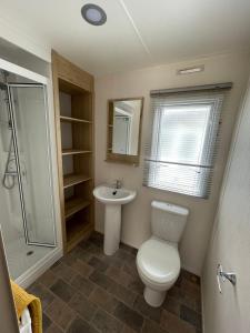 The holiday home includes 3 bedrooms, a living room, and 2 bathrooms with a walk-in shower. A TV is available. Caravan - Sleeps up to 8 & Free parking also features a seating area and a fireplace.