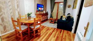 The apartment with a terrace and mountain views features 1 bedroom, a living room, a flat-screen TV, an equipped kitchen with an oven and a microwave, and 1 bathroom with a bidet. Towels and bed linen are featured at the property. Carlina Canfranc includes an outdoor dining area.