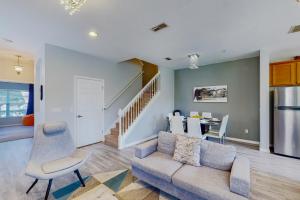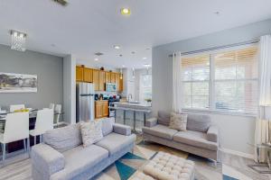 Klimatizovaný prázdninový dům Carriage Point at Reunion Resort zahrnuje 3 ložnice, posezení a 2 koupelny s fénem a toaletními potřebami zdarma. Tento prázdninový dům má terasu, satelitní TV, kuchyň s dobrým vybavením včetně lednice, myčky nádobí a trouby a koupelnu.