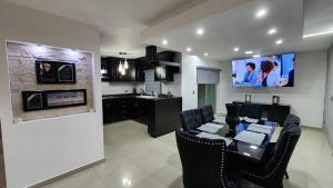 This holiday home features a private pool and a fireplace. Boasting a private entrance, this air-conditioned holiday home features 1 bedroom, 3 bathrooms and a kitchen. The well-equipped kitchen has kitchenware, an oven and a microwave. The holiday home features a flat-screen TV, a washing machine, a minibar, executive lounge access as well as garden views. The unit has 4 beds.