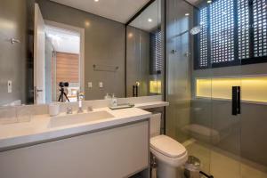 Tento prázdninový dům s klimatizací má 1 ložnici, kuchyň s kompletním vybavením včetně lednice a myčky nádobí a 9 koupelny. V koupelně ubytování Casa Alto Padrão - Riviera de São Lourenço - SP nechybí sprcha ani fén.