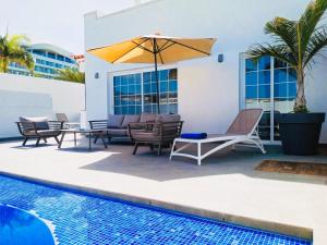 Pokoje: 1Offering a private swimming pool, this villa is distributed over 2 floors and has free Wi-Fi. There is a twin bedroom with en suite bathroom, another bedroom with a queen-size bed and a master bedroom with a private rooftop terrace. There are 2 additional bathrooms with shower. The living room opens onto the pool area and features 2 large sofas, a large flat-screen TV with English channels and a DVD player. There is a dining area, a laundry room and a fully equipped kitchen. Bed linen and towels are included.