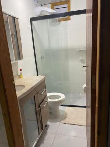 Klimatizovaný prázdninový dům Casa bem aconchegante nabízí 1 ložnici, 1 koupelnu a plně vybavenou kuchyň. Prázdninový dům má také koupelnu.