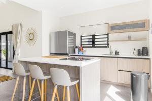 Vila ubytování zahrnuje 3 ložnice, 2 koupelny, ložní prádlo, ručníky, TV s plochou obrazovkou, jídelní kout a plně vybavenou kuchyň. Z terasy ubytování ubytování je výhled na bazén. Tato klimatizovaná vila v Casa Bon Bida Mambo Beach poskytuje posezení, pračku a koupelnu s fénem.