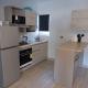 Diese Ferienwohnung mit Klimaanlage ist versehen mit 2 Schlafzimmern, Flachbild-TV, einem Essbereich und einer Küche mit einem Kühlschrank und einem Ofen.