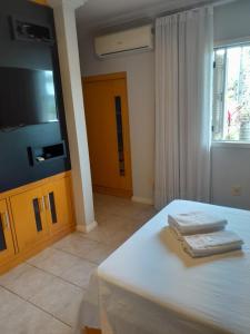 Дом для отпуска объект размещения оснащен кондиционером и располагает 4 спальнями, гостиной, полностью оборудованной кухней с холодильником и кофемашиной, а также 4 ванными комнатами с душем и феном. В доме для отпуска Casa c piscina, churrasq e Wi-Fi, lazer completo для гостей подготовлены полотенца и постельное белье.