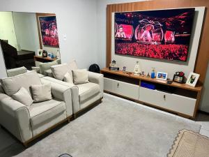 Tento prázdninový dům má 2 ložnice, 1 koupelnu, ložní prádlo, ručníky, TV s kabelovými programy, jídelní část a kuchyň s kompletním vybavením. Z balkonu ubytování ubytování se otevírá výhled na hory. V klimatizovaném prázdninovém domě Casa Campeche - 100m da Praia - com Piscina je k dispozici posezení, pračka a koupelna s bezplatnými toaletními potřebami.