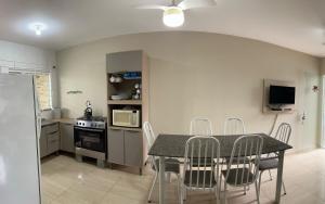 Prázdninový dům Casa Com Piscina, 5 Quadras da Praia nabízí 1 ložnici, obývací pokoj, plně vybavenou kuchyň s lednicí a troubou a 1 koupelnu. Prázdninový dům má také koupelnu.