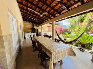 Questa casa vacanze con aria condizionata comprende 3 camere da letto, un soggiorno, una cucina con utensili più frigorifero, e 2 bagni con doccia e set di cortesia. Presso Casa com piscina e churrasqueira próximo à praia troverete una TV a schermo piatto in dotazione.