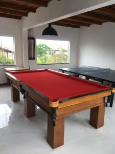 Esta casa o chalet con aire acondicionado consta de 1 dormitorio, una sala de estar, una cocina totalmente equipada con nevera y hervidor, y 1 baño con ducha. Hay TV de pantalla plana con canales vía satélite en Casa com Piscina temporada.