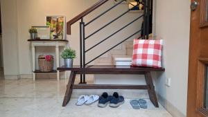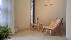Featuring a private entrance, this air-conditioned holiday home comprises 1 living room, 3 separate bedrooms and 2 bathrooms with a walk-in shower and a bath. Guests can make meals in the kitchen that is equipped with a stovetop, a refrigerator, kitchenware and a microwave. The spacious holiday home provides soundproof walls, a tea and coffee maker, a seating area, a flat-screen TV with streaming services, as well as garden views. The unit provides 9 beds.