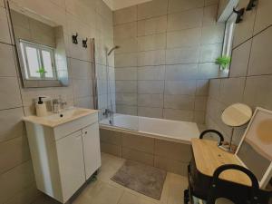 The fireplace is a top feature of this holiday home. Boasting a private entrance, this spacious holiday home also comes with 1 living room, 2 separate bedrooms and 1 bathroom with a bath. Meals can be prepared in the well-fitted kitchen, which features a stovetop, a refrigerator, kitchenware and an oven. Featuring a terrace with garden views, this holiday home also features a washing machine and a flat-screen TV with cable channels. V této ubytovací jednotce se nachází 3 postele.