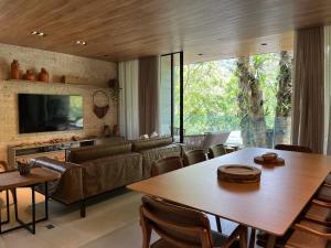 Tento prázdninový dům s klimatizací má 2 ložnice, obývací prostor, kuchyň s kompletním vybavením včetně trouby a mikrovlnné trouby a 3 koupelny. Koupelna v ubytování Casa 16 da Villa - Fazenda Marambaia disponuje vanou i sprchou.
